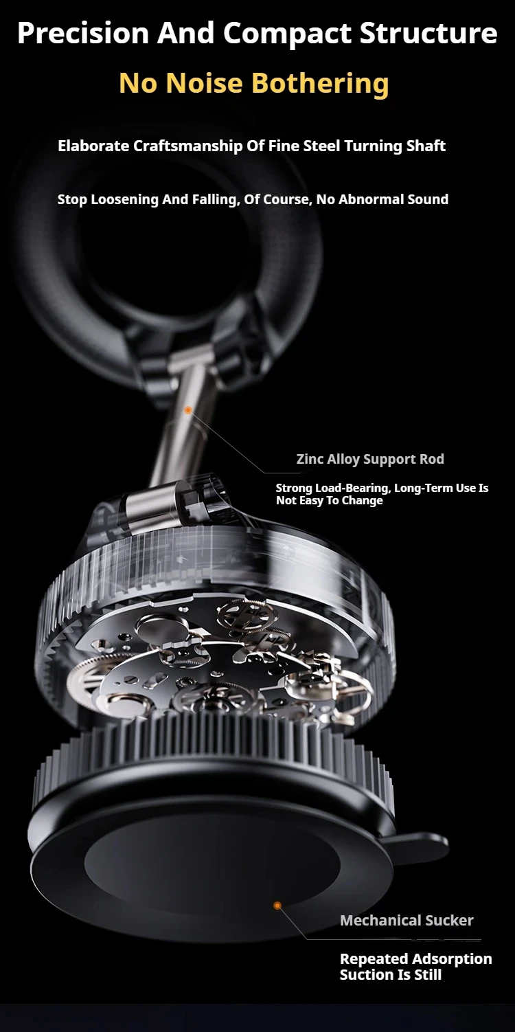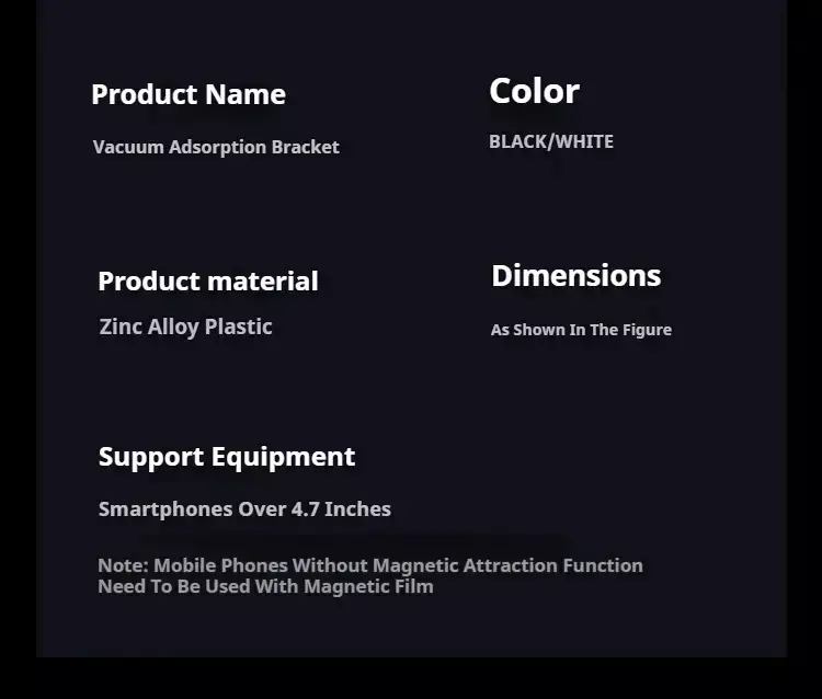 Apresentando um design de sucção a vácuo, este suporte para telefone oferece adesão dupla-face, permitindo que ele se fixe com segurança em várias superfícies.Esteja você colocando-o no painel ou no para-brisa, você pode confiar em sua aderência estável para uso universal.